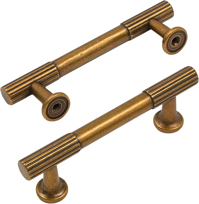 Amerdeco 10 Pack Antique Brass Cabinet Pulls 3 Inch(76MM) Hole Centers Kitchen Cabinet Handles Hardware for Cabinets Cupboard Handles Drawer Pulls ZH0071