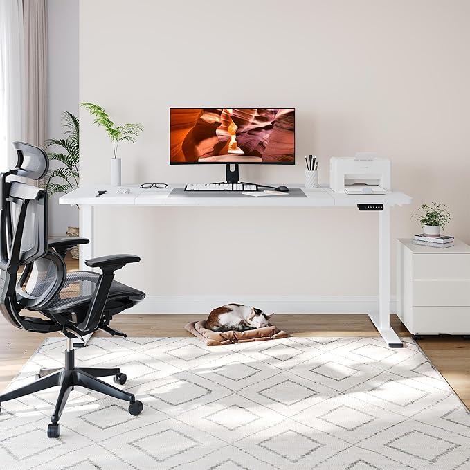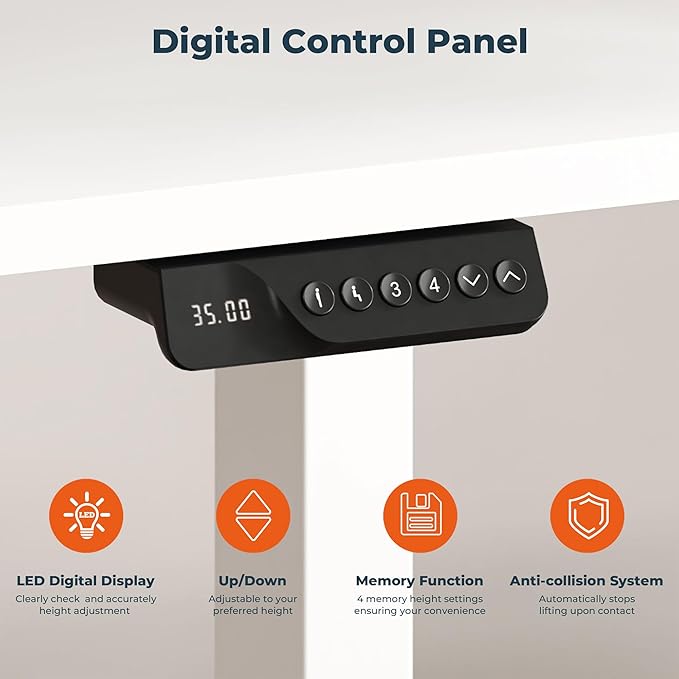 - Powerful and Smooth Dual Motor Lifting System: The electric standing desk is equipped with dual motors that operate quietly, producing a noise level of less than 50 decibels. This ensures minimal disturbance even in the quietest room. Furthermore, compared to single motor desks, the dual-motor can support an increased weight capacity of 45% (up to a total weight of 198 pounds).