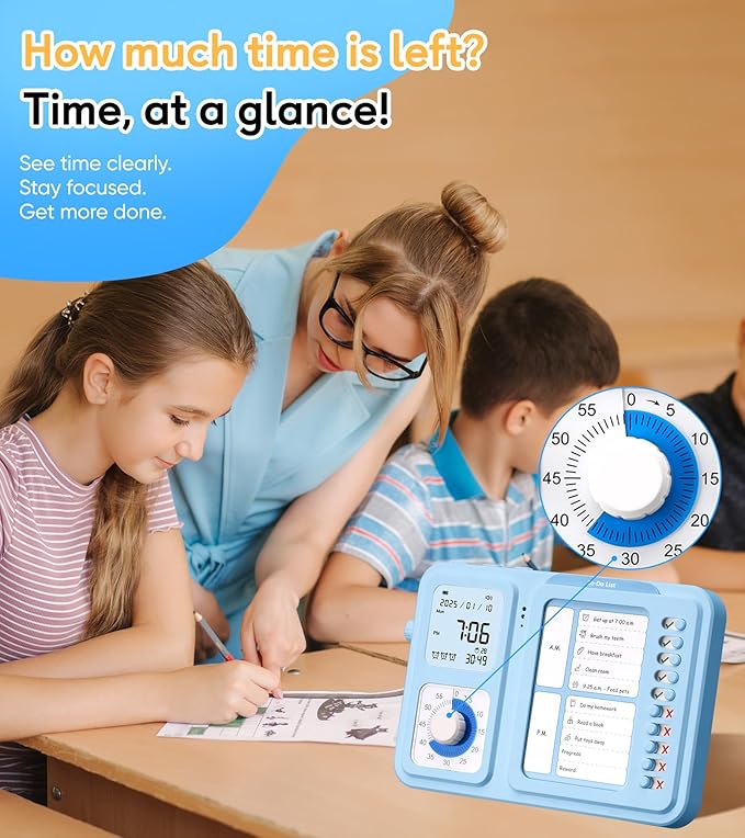 - [3-in-1 Visual Timer for Better Focus]: This time management tool combines visual timer, digital clock, and chore chart, helping both kids and adults stay on schedule. Designed for kids with ADHD, ASD, and special needs, this productivity timer ensures a distraction-free, making it ideal for classrooms and study areas