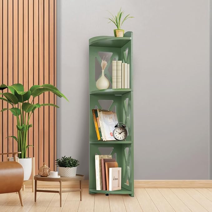 NHZ Corner Shelf Stand, Wood Corner Bookshelf, Corner Bookcase and Plant Stand (Green, 4 Tier)