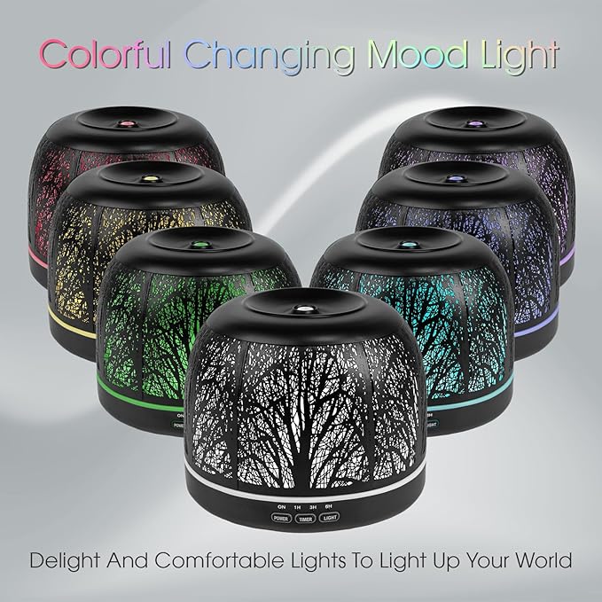 - Scent your home naturally with this beautiful metal essential oil diffuser. The 7-color LED lights create a peaceful ambiance, while the whisper-quiet operation ensures undisturbed relaxation. Adding a touch of tranquility to your daily routine.