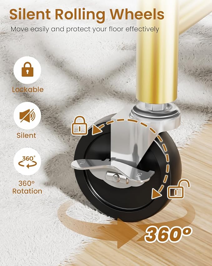 - ๐๐๐๐๐๐, ๐๐๐๐๐๐๐ & ๐๐๐พ๐๐ผ๐ฝ๐๐ ๐พ๐ผ๐๐๐๐๐: The casters of our coat rack have been carefully designed to move over a variety of floors such as hardwood, tile or carpet. Additionally, the 2 lockable wheels provide security, allowing you to keep your wardrobe rack securely in place when needed.