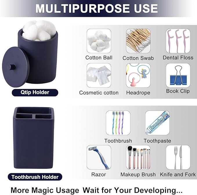 - High Quality Resin Material -6-piece resin bathroom accessory set is easy to clean, with a smooth surface that can be wiped with a towel or rinsed with water. Waterproof design can prolong the service life of products when stored in humid environments for a long time.