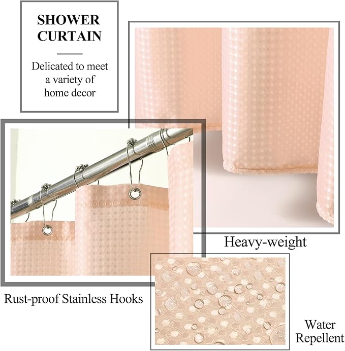 - Solid Color Waterproof Shower Curtain - This shower curtain size is designed for most showers or bathtubs and is made of high-quality polyester fabric to keep the bathroom dry. The 12 stainless steel hooks used in conjunction with the shower curtain slide smoothly and are easy to install.