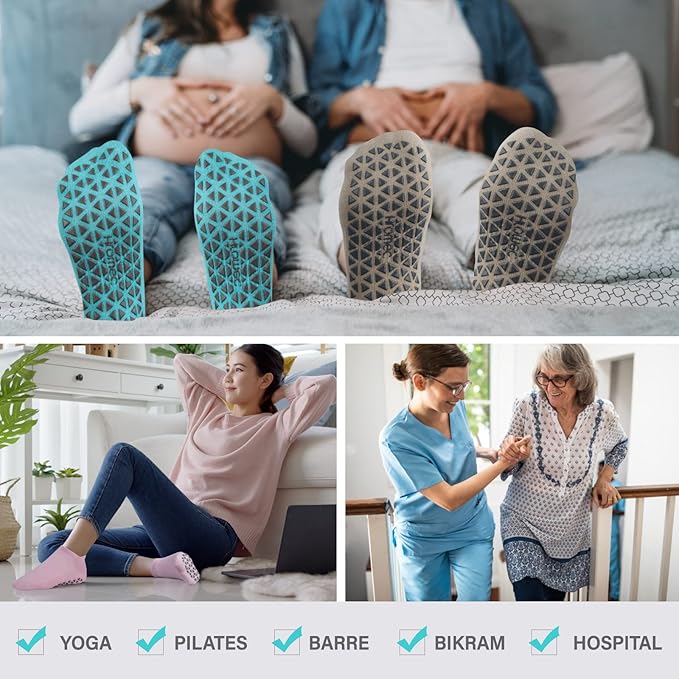 - SIZE: Fits Women’s shoe size 5-7. These adult grippy socks for men and women are perfect for yoga, pilates, barre,bikram,ballet, studio, gym or dance. Also Ideal for hospital socks, floor socks, physiotherapy, elderly care, pregnancy and more to prevent falls from stairs , or the floor.