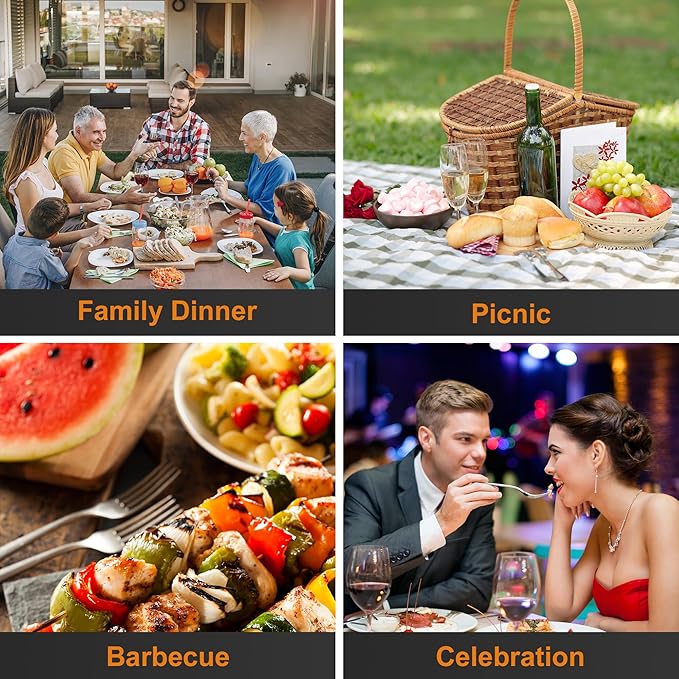 - Perfect for Everyday or Party Time:Our versatile stainless steel dinner forks work equally well for family dinners, BBQs, weddings, or picnics! Pair them with your existing flatware or use this metal forks set solo—they’re simple yet fancy enough to impress guests.