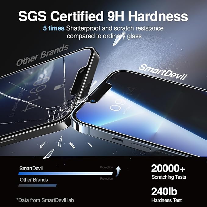 - Military-Grade Protection:Made of nano-reinforced 9H tempered glass, SGS certified. Provides 5X stronger scratch resistance and proven durability, withstanding thousands of pressure and impact tests.