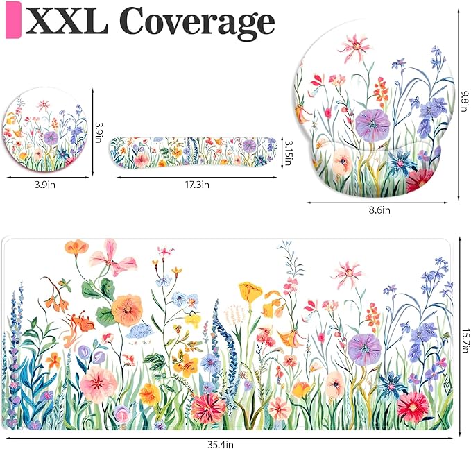 Long Mouse Pad XXL,Ergonomic Desk Mat Gaming Set,Keyboard Wrist Support Rest Mouse Pad Suitable for Office and Home (XXL Fragrant Plants)