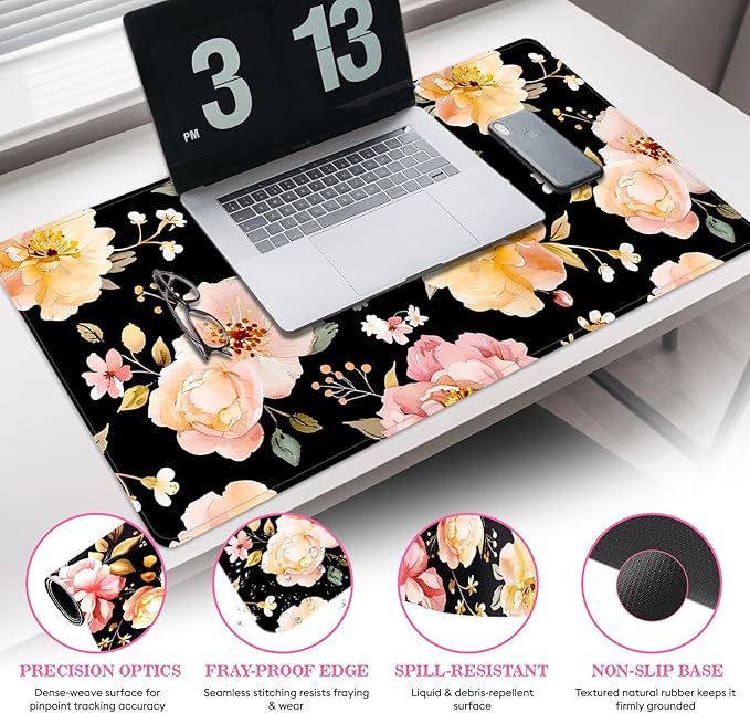 - Gaming Grade Performance: Non slip base anchors desk pad during intense sessions.Ultra smooth surface maintains Precision mouse tracking.Large mouse pad accommodates low medium DPI sweeps.Water resistant computer mat repels accidental spills during marathon gaming