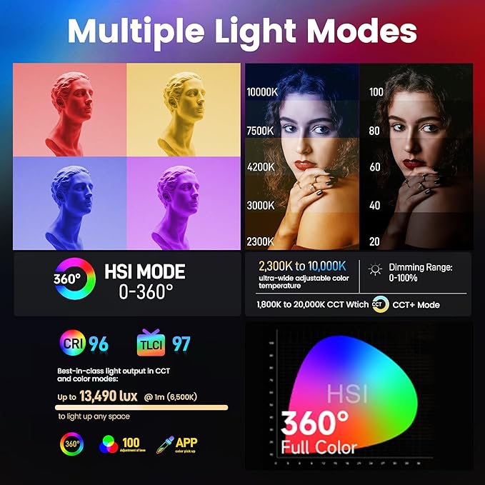- Exceptional Brightness: Provides up to 13,490 lux at 1m, ensuring ample illumination for diverse shooting environments.