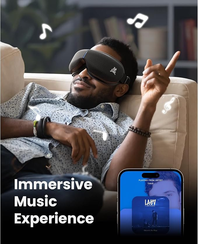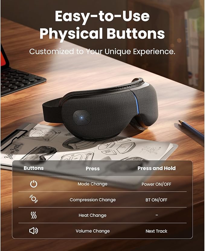 - Quieter Motor & Customizable Music - Our upgraded electric eye care device incorporates low-noise technology reduces audible noise from 60dBA to just 45dBA, so that you can enjoy a low-noise, comfort, warm nap. The built-in white noise music helps to reduce anxiety and can be turned off at your convenience. You can also connect the massager to your phone or tablet to play your own playlist. Simply wear it for 15 minutes before going to bed every night to relax and enjoy a better night's sleep