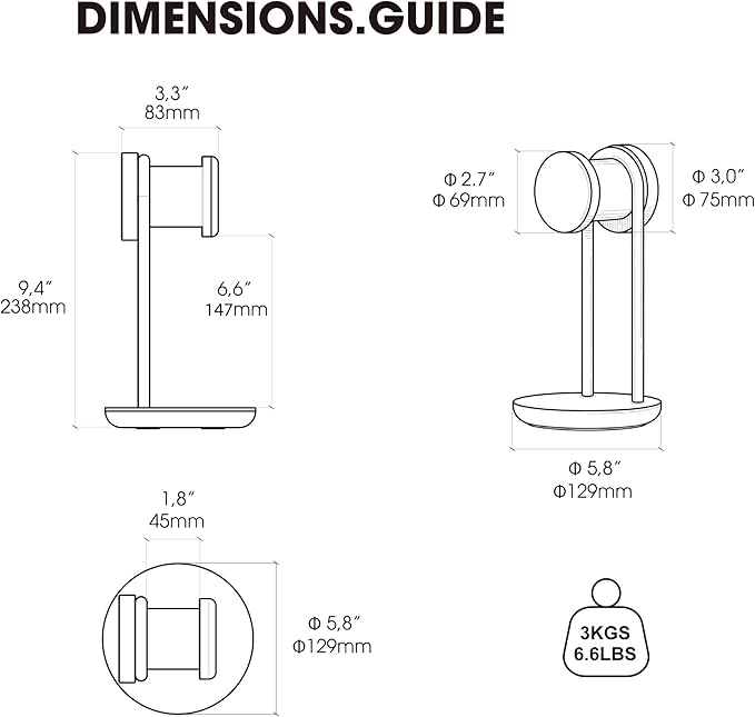 - 【Ultra Stable】With a 5.8″ weighted base and four silicone pads, this headset stand is tested to support up to 6.6 lbs. It remains firmly in place on wood, glass, or metal desktops—even the heaviest flagship headphones hang safely and effortlessly.
