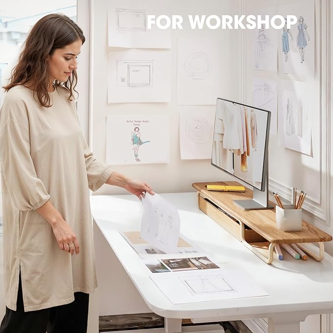 - 【Large Capacity Drawer】The computer riser features a slide-out drawer (20.3”L x 7.3”W x 2.6”H) to store cables, pens, or office accessories discreetly. Fits perfectly under a 37-inch desktop and compatible ultra-wide or dual monitors.