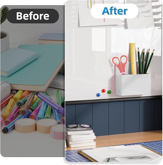 - ADJUSTABLE DIVIDER: can be removed and placed at different slots to vary the size of compartment. Enough storage capacity to fit 12 standard dry-erase markers if remove the divider.