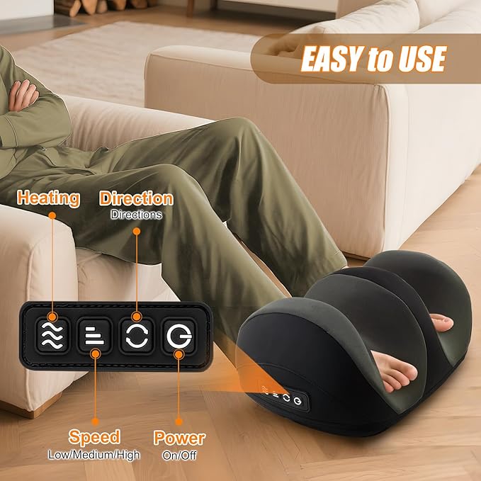 - 🖐🏻【Easy to Use】The Foot Massager is extremely user-friendly. Simply utilize the button to adjust the heat, direction, and massage intensity. Moreover, its 15-minute automatic shutdown function prevents overuse, ensuring a safe and comfortable massage experience.