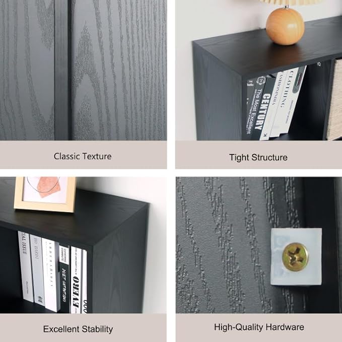 Wooden 8 Cube Storage Organizer with Closed Back Panel,White Shelf Heavy Duty Cubby Storage Organizer with Compartments for Living,Display Shelf,Bookshelf (Black, 8-Cube)
