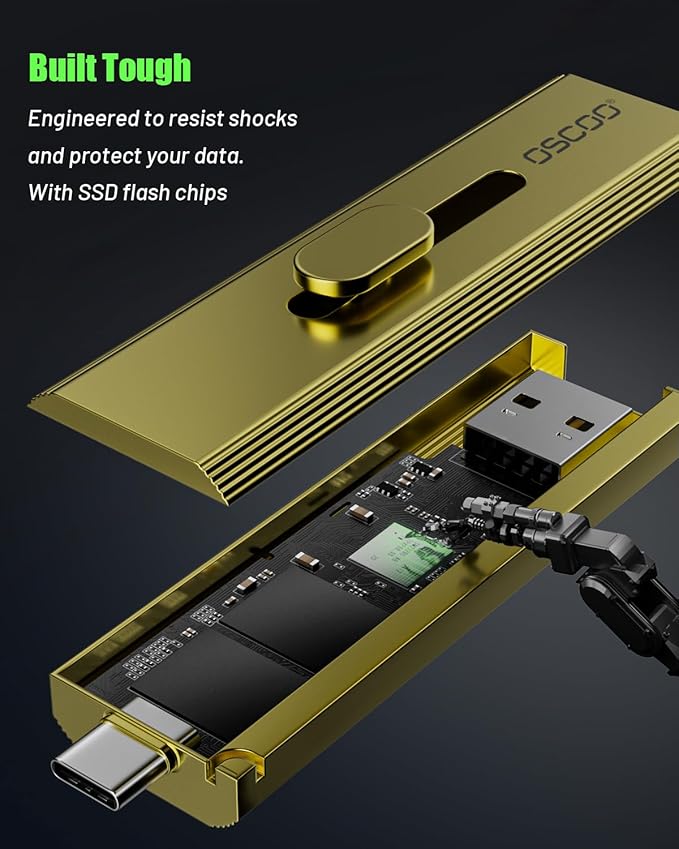 - To achieve OSCOO T10’s maximum performance of up to 1000MB/s read, please ensure that your device supports USB 3.2 Gen 2x2, USB 3.2 Gen 2, USB 3.1 Gen 2x2, Thunderbolt 4/5, or higher interfaces, and that you are testing on a high-performance system. If you are using an older or lower-spec computer with USB 3.1 Gen 1 or USB 3.0 ports, the bandwidth limitation will cap the speed to around 400–500MB/s. On even slower USB interfaces, the read speed may drop to around 100MB/s