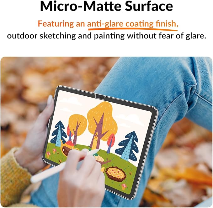 - Anti-Glare: Enjoy a smooth creative experience anywhere. This protector's delicate frosted finish is engineered to combat glare and harsh light reflections on your iPad 10th generation screen protector. Draw outdoors; your artwork will shine true, even under the sun
