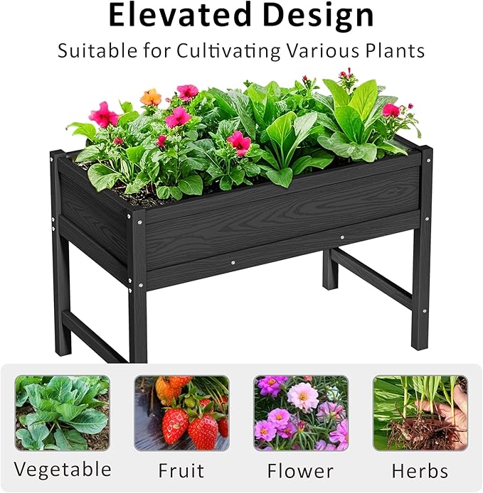 HDPE Raised Garden Planting Bed with Legs,Garden Boxes Outdoor Raised with Drainage Hole Rot-Resistant,Raised Beds for Gardening for Backyard, Patio, Balcony 300 lb Capacity (Black)