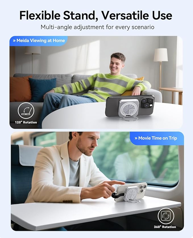 - Strong Magnetic with Kickstand: Attach your cell phone with magnetic attraction, don't worry about falling off. Enjoy multi-angle viewing with the stand feature, liberate your hands for other tasks(Note: Not available for Apple phones with Lightning connector)