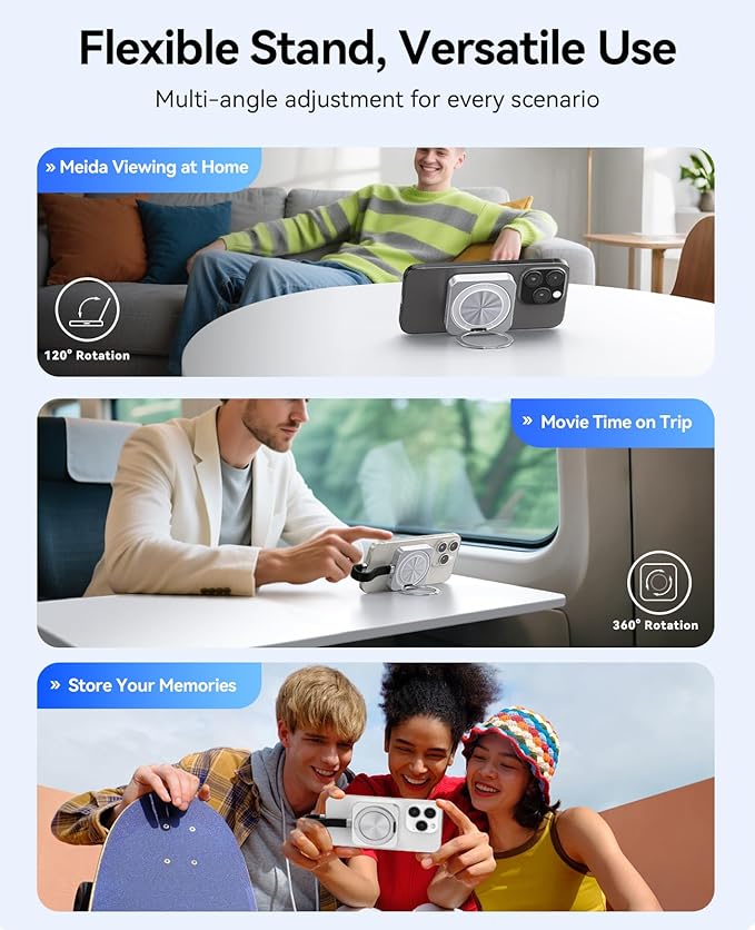 - Strong Magnetic with Kickstand: Attach your cell phone with magnetic attraction, don't worry about falling off. Enjoy multi-angle viewing with the stand feature, liberate your hands for other tasks(Note: Not available for Apple phones with Lightning connector)