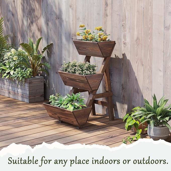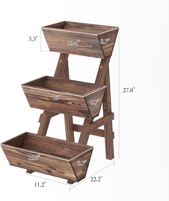 3-Tier Wooden Vertical Raised Garden Bed with Legs, Tiered Planter Box, Vertical Garden Planter,Wood Plant Stand Wood Flower Rack for Patio, Balcony, Freestanding. (Carbonized-Small)