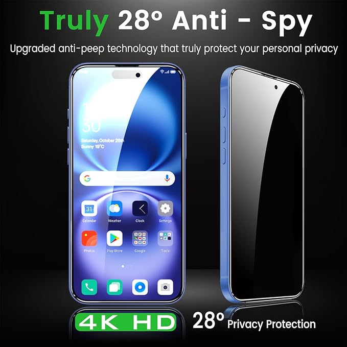 - 【Excellent Privacy Protection】 This iPhone 16 Plus screen protectors made of 9H military blast-resistant glass, realizes 28° super privacy function. It can effectively safeguard your privacy from people near you who may be peeking. Note: When using the privacy protector, the brightness of your phone screen will decrease, It is recommended to increase the brightness when using it.