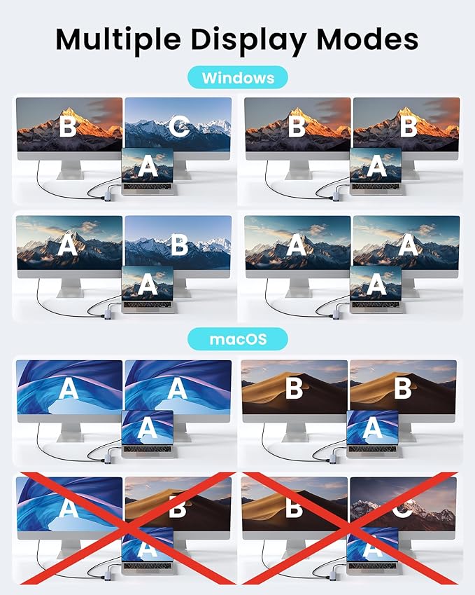 - 【Dual 4K HDMI for Seamless Multitasking】 Extend or mirror your display on two 4K@60Hz monitors (Windows) or enjoy dual 4K@60Hz in mirror/extend (SST) mode on Mac—perfect for work, gaming, and creative projects.