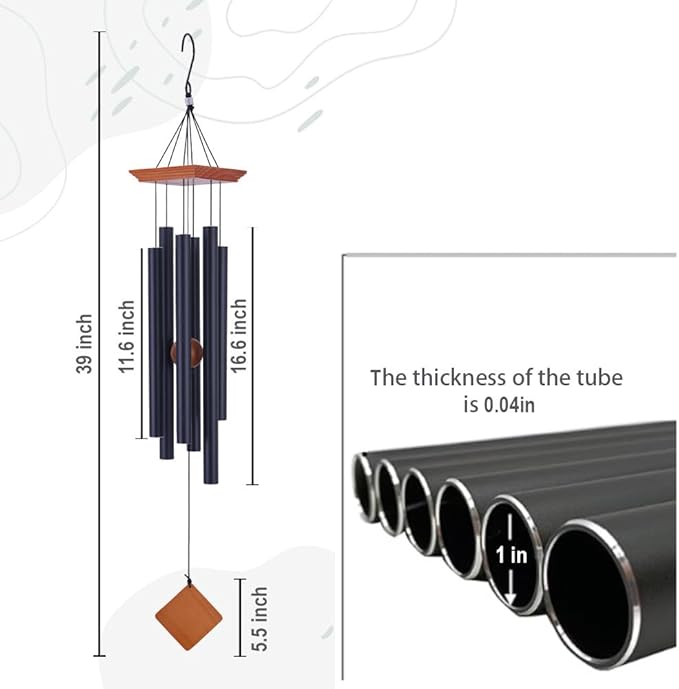 - 39" Big Deep Wind Chimes:When a breeze whispers through them, the meticulously tuned pipes sing with the sacred, distant melody of church bells. Each note, professionally calibrated, produces rich low-frequency vibrations—at times as mellow as a cello, at others as lingering as ancient bell tones.