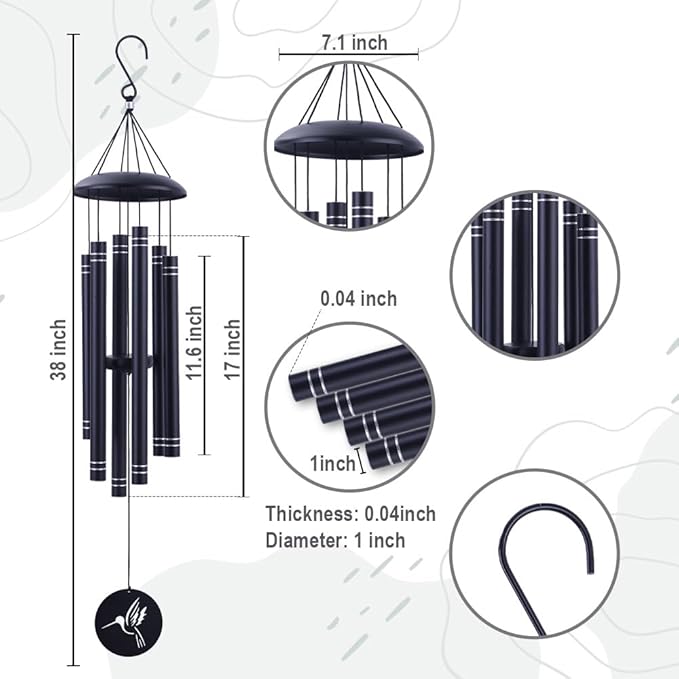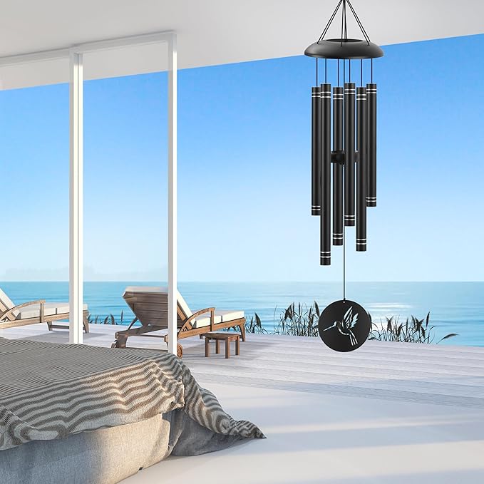 38" Large Metal Wind Chimes for Outside Deep Tone, Memorial Hummingbird Wind Chimes Outdoor with 6 Heavy Tubes for Patio,Garden Hanging Décor,Sympathy Gifts, Black