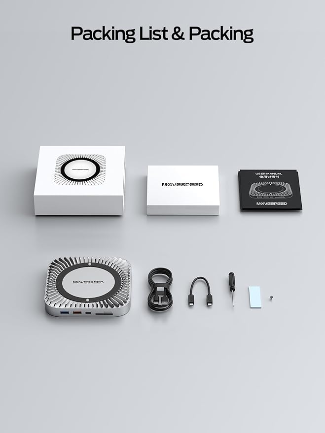 MOVE SPEED Mac mini M4 Dock Enclosure, 10 in 1 Aluminum Stand Hub, 10Gbps USB-C/A, 4K60Hz HDMI, SD/TF Reader, Space-Saving Vertical Design