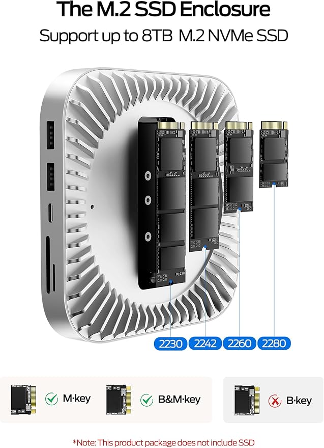 - 【Built-In SSD Expansion】Featuring a versatile M.2 NVMe/SATA enclosure that supports drives up to 8TB and all standard sizes (2230/2242/2260/2280). Pro Tip: For optimal performance during large file transfers or extended use, connect the power adapter to maintain consistent speeds