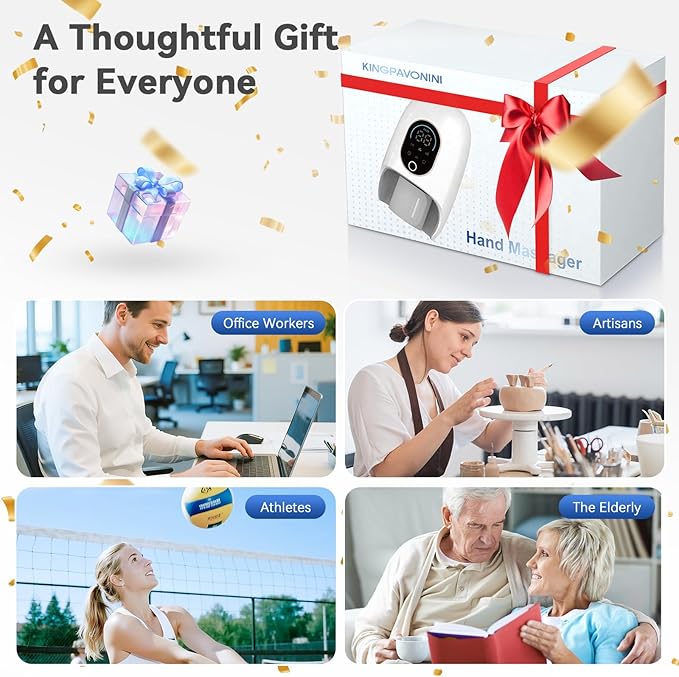 - [Thoughtful Wellness Gift — Fits All Hand Sizes] Treat your loved ones to soothing comfort with this hand and wrist massager with heat and compression; expanded interior space fits a wide range of hand sizes, ideal for parents, partners, office workers, and athletes, perfect for Christmas Day, anniversaries and birthdays