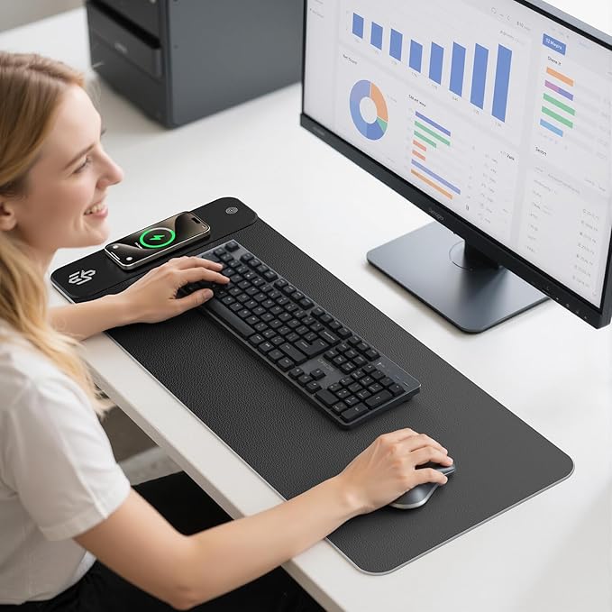 GIM PU Leather RGB Gaming Mouse Pad with 15W Magnetic Wireless Charging, 800x300x4mm LED Mouse Mat, 10 Light Modes, Non-Slip Rubber Base for PC MacBook Laptop