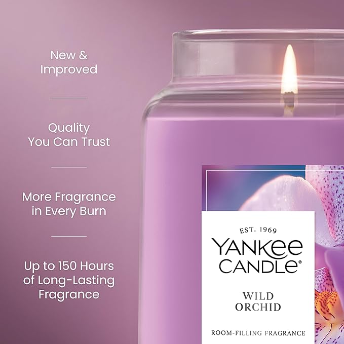 Yankee Candle Large Jar Scented Candle with Up to 150 Hour Burn Time, Premium Plant Wax Blend for Consistent Burn, 22 Oz Jar Candle with Room Filling Fragrance, Wild Orchid