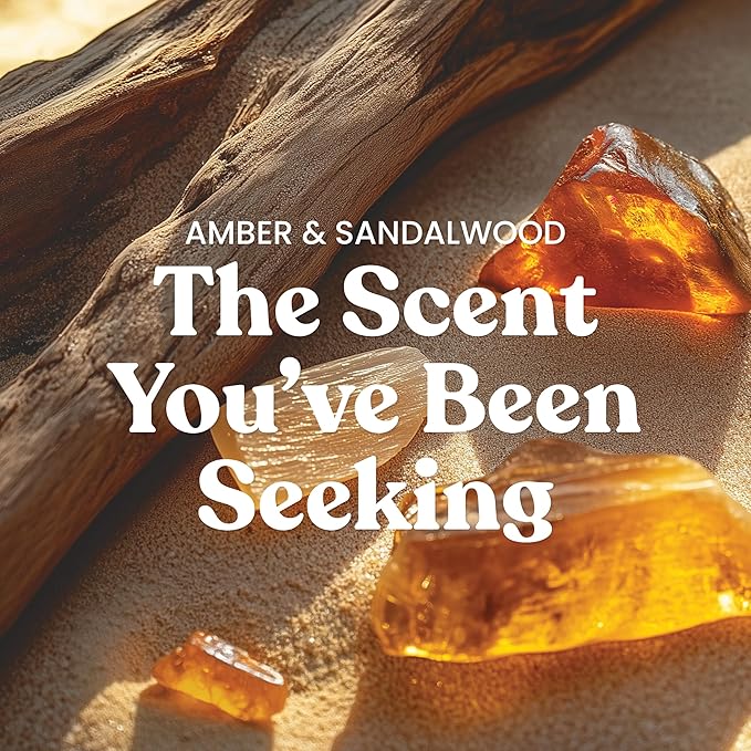 - Amber & Sandalwood: Warm yourself on a secluded beach with sun-drenched notes of driftwood, amber, and cardamom. Hints of caramel and patchouli round out this relaxing fragrance experience.
