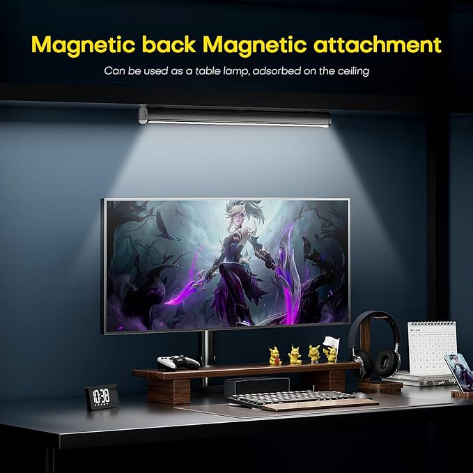 - Eye-care Reading Light: Effectively reduces the blue rays received by our eyes. The asymmetrical optical design illuminates your desktop only, and will not cause any glare or flicker to your computer screen.