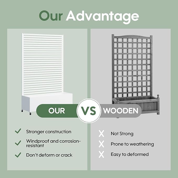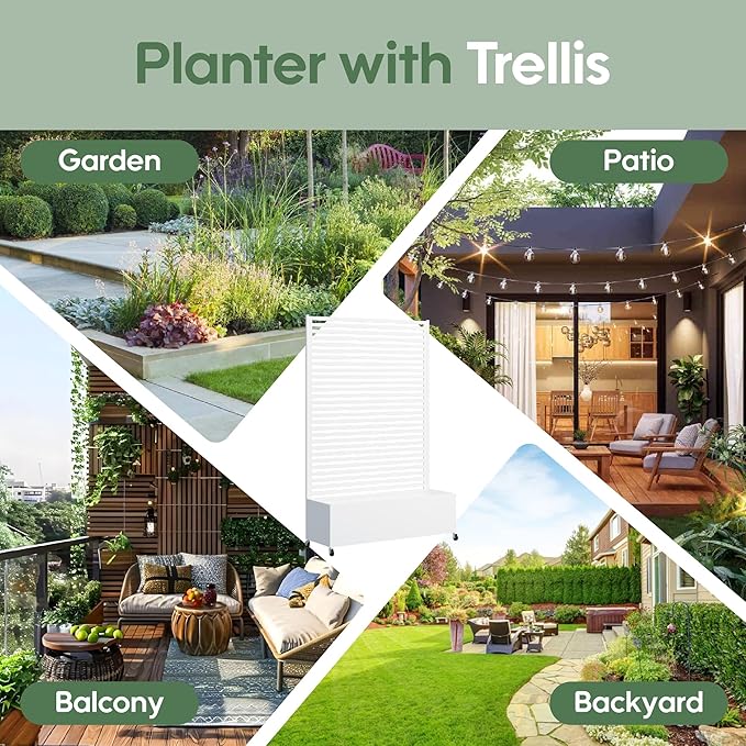 - Versatile Design--This metal planter with trellis serves triple purposes as an elevated garden bed for flowers/plants, a sturdy trellis for climbing flora, or a stylish privacy screen to enhance outdoor living spaces. Its adaptable structure makes it the ultimate gardening solution for diverse needs.