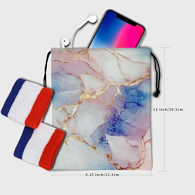 - 【QUALITY PRINTING】 Bag's printing is clear and can remain color last for a long time. Blue marble grip bags for gymnastics is environmental friendly. As a portable leisure drawstring bag, it is worthy and will definitely be your first choice.