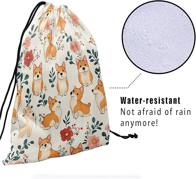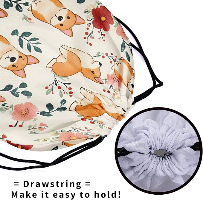 - 【QUALITY PRINTING】 Bag's printing is clear and can remain color last for a long time. Corgi grip bags for gymnastics is environmental friendly. As a portable leisure drawstring bag, it is worthy and will definitely be your first choice.