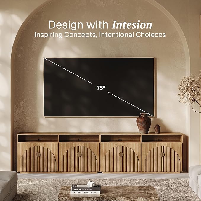 - Unique Fluted Design, Elevates Home Aesthetics: BELLEZE fluted tv stand features a modern groove design, complemented by arched door panels and gold semi-circular handles, making it a striking focal point in any living room or bedroom.Add a touch of luxury and refined detail to your home decor, creating a unique artistic atmosphere. It is the perfect living room tv stand that combines style and functionality, elevating your space with its bold, sophisticated look.