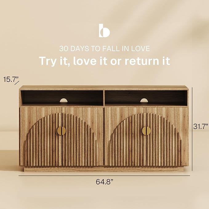 - Unique Fluted Design, Elevates Home Aesthetics: BELLEZE fluted tv stand features a modern groove design, complemented by arched door panels and gold semi-circular handles, making it a striking focal point in any living room or bedroom.Add a touch of luxury and refined detail to your home decor, creating a unique artistic atmosphere. It is the perfect living room tv stand that combines style and functionality, elevating your space with its bold, sophisticated look.