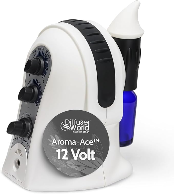 Waterless Diffuser for Essential Oils 12V Aroma-Ace™, Made in USA Black Aroma Atomizer Waterless Essential Oil Diffusers for Home Large Room, Air Aromatherapy Home Scent Diffusers