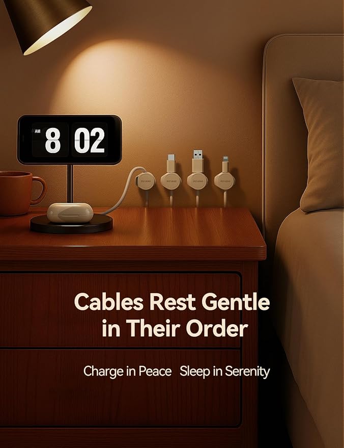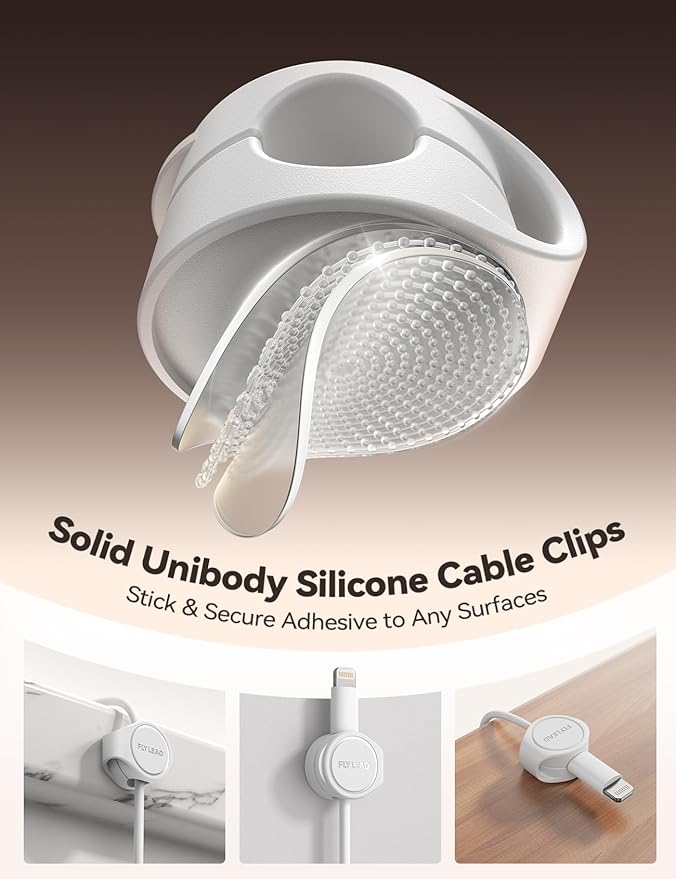 - Special Designed Silicone Magnetic Cable Clips: One-piece silicone molding design FLYLEAD cord organizer with better moldability, the soft silicone material makes this cable organizer more malleable and skin-friendly. After over 10,000 times of tensile tests, the flexible upper and lower joints never broke. With the strongest N55 magnets, covers can be tightly adherent to each other, soft silicone-made FLYLEAD cord holder could embrace cables, which won't squeeze or damage the cables