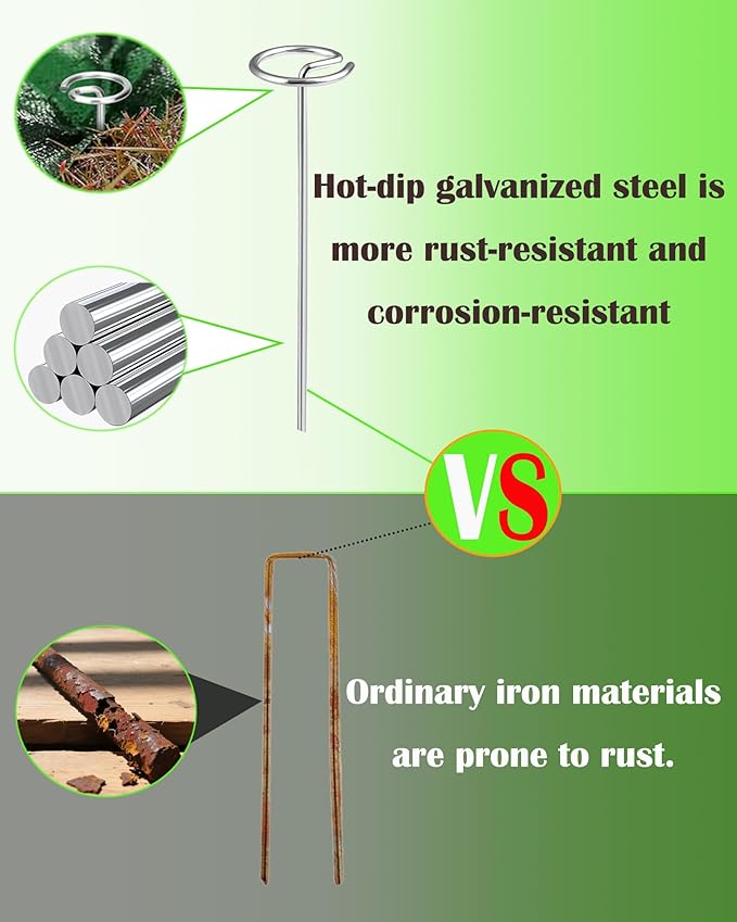- 【Galvanized Anti-Rust Protection】Hot-dipped galvanized coating ensures rust-resistant performance in all weather conditions. Perfect for garden stakes, lawn staples, and turf pins applications. Reusable without corrosion