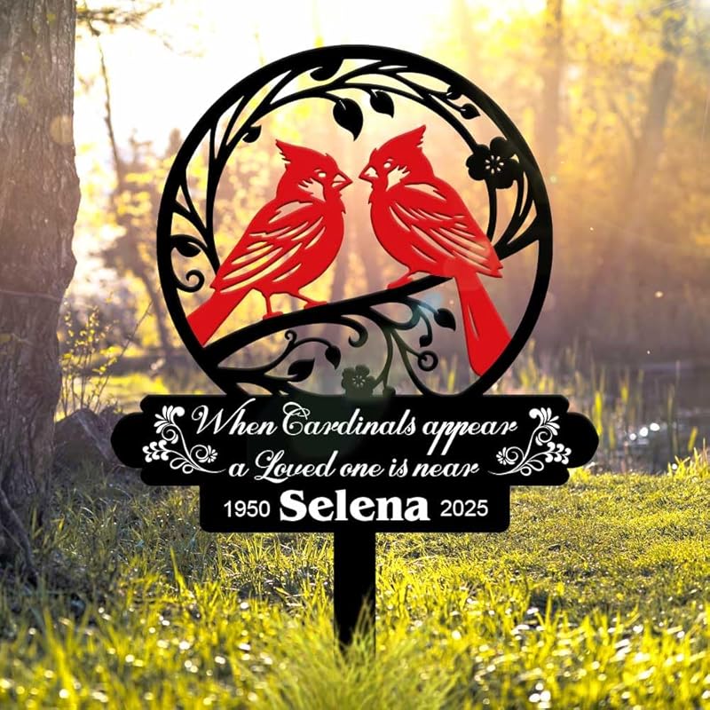 Personalized Cemetery Memorial Metal Stakes, Cardinals Memorial Grave Markers,Graden Decorations for Loss of Mother Father, Outdoor Sympathy Decor Gift