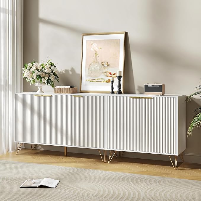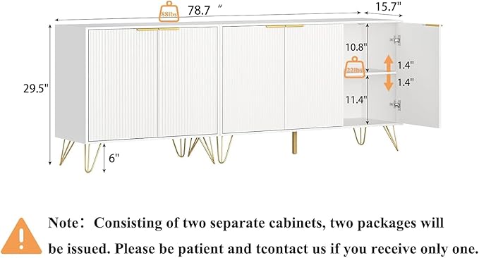 - Crafted to Last: The surface supports up to 88+88 lbs, while each shelf can hold up to 22 lbs, offering plenty of space for media devices and decor, made of thickened engineered wood (main frame: 12mm, door: 15mm), ensuring that your modern TV cabinet withstands the test of time.