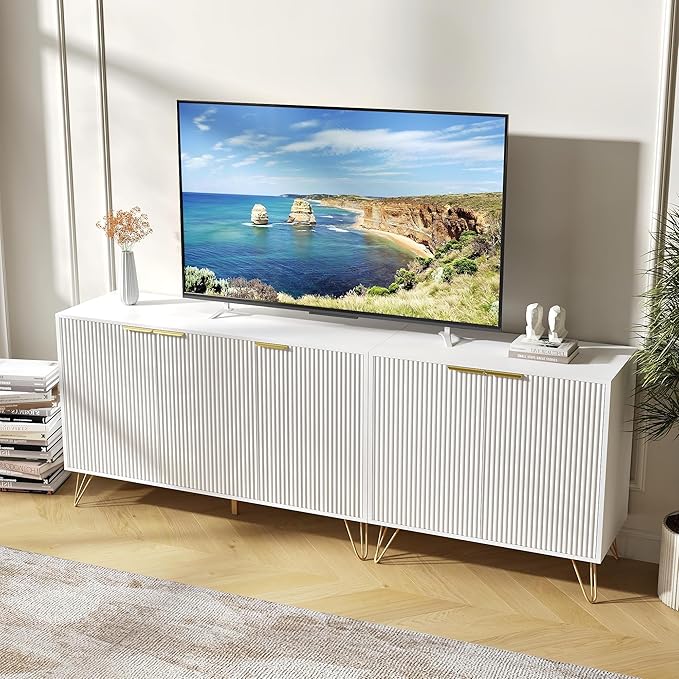 - Stylish Modern Design: Elevate your living room with our sleek white TV stand, perfectly designed to hold 60/65/70/75 inch televisions. This modern entertainment center is your ideal partner for an immersive viewing experience and compliments any decor beautifully! Our tv stands for living room includes a clever groove design, making maintenance a breeze!