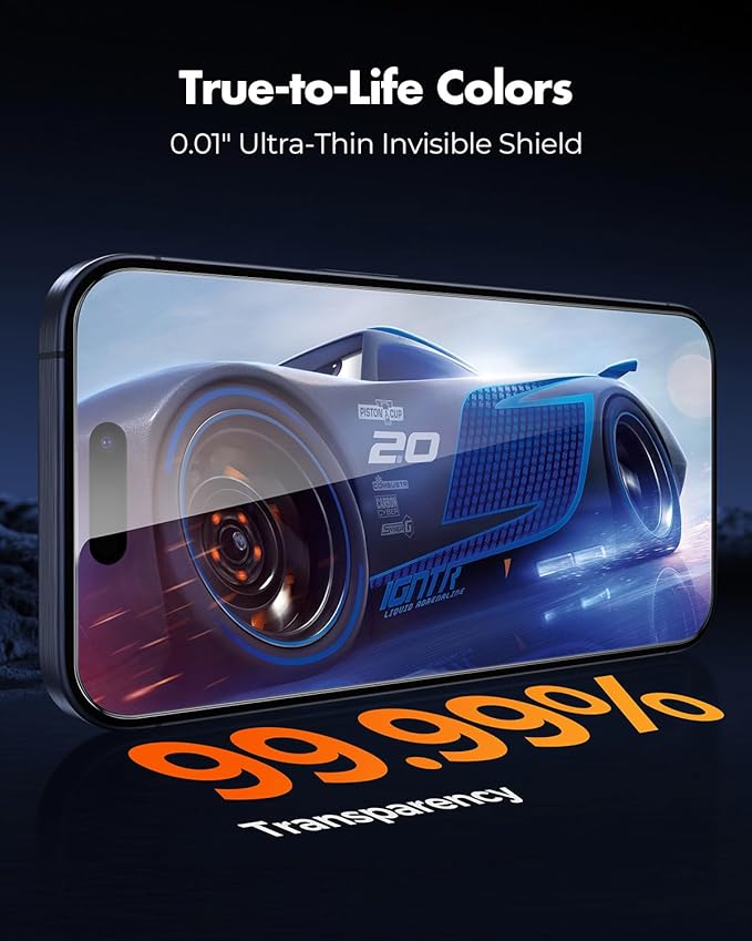 - Ultra-thin, HD clarity & silky touch: Just 0.01” thin with 99.9% transparency, this screen protector keeps your iPhone’s vibrant display sharp and touch smooth. Enjoy fast, responsive swipes—just like using the bare screen.