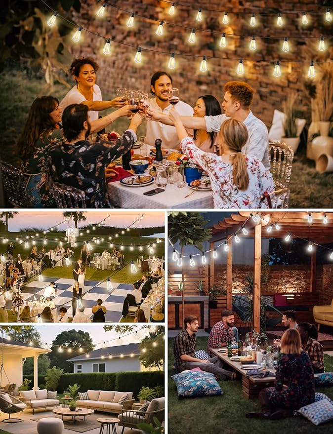 - 【Upgraded 3-Color Outdoor String Lights】Employing cutting-edge LED technology, we've designed these remarkable patio string lights that combine three distinct color temperatures—2700K, 4000K, and 5000K—into a single string light. Seamlessly switch among warm white, neutral white, and daylight white settings, eliminating the hassle of color selection. These lights are ideal for enhancing the ambiance of any event, including gatherings, celebrations, weddings, and family reunions.